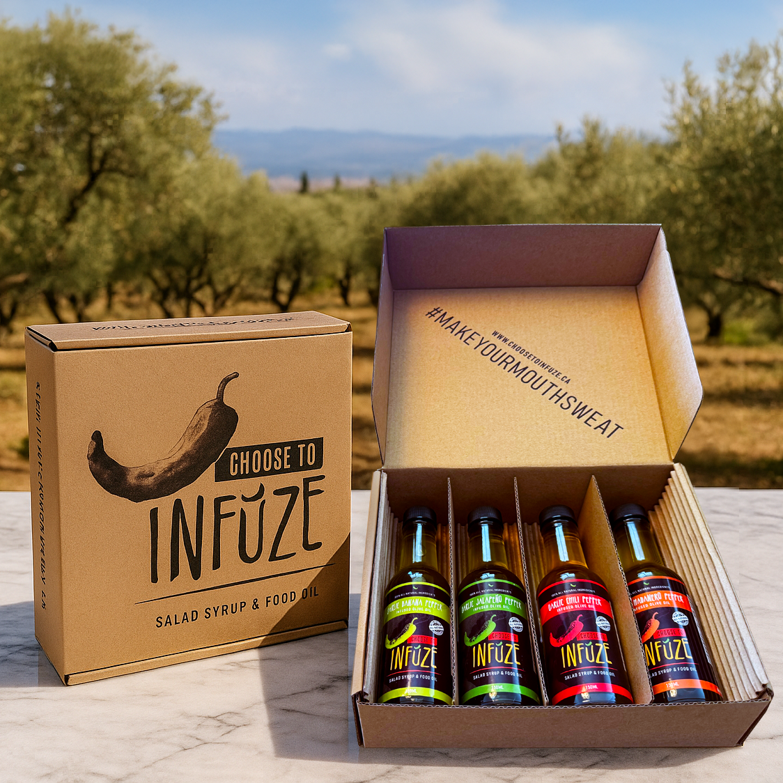 • 100% all-natural: Our infused olive oils will transform your favourite foods and turn up the heat with 4 mouth-watering flavours